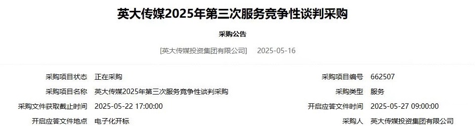 英大传媒2025年第三次服务竞争性谈判采购